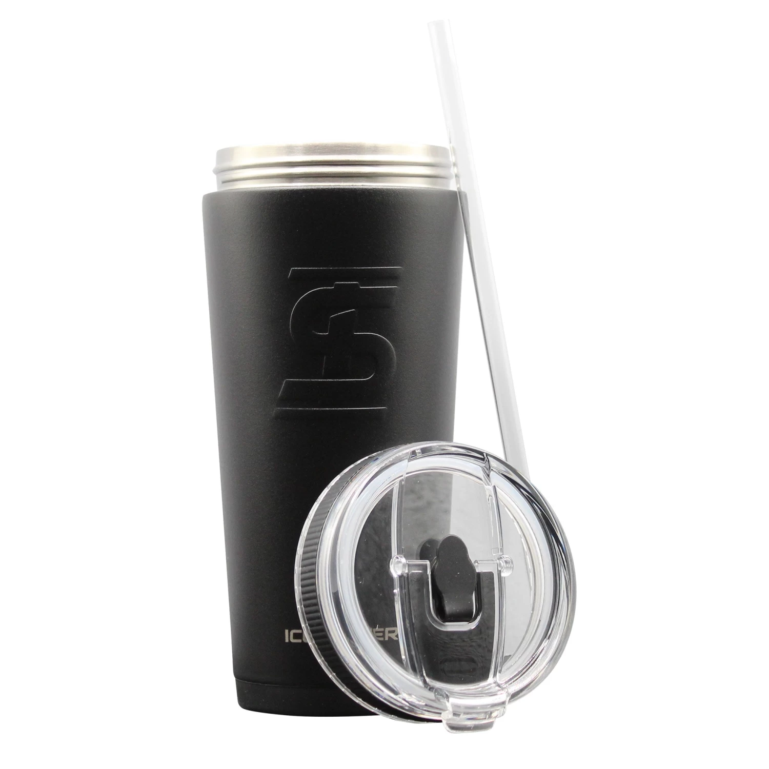 Constructed from premium, kitchen-grade stainless steel, the 26oz. Stainless Steel Bottle will not absorb odors and is double wall vacuum insulated to keep hot drinks hot and ice-cold drinks cold while preventing condensation from building up on the outside of the bottle. For easy measuring, the 26oz. Flex Bottle has internal 5oz, 10oz, 15oz, and 20oz. measurement lines so that you can add the perfect amount of liquid to mix up any tasty concoction! The unique Flex Lid lets you choose how you want to sip your favorite drink: flip up the lid tab to drink from the spout on the edge of the lid or insert the included straw into the straw hole in the center of the lid to sip your drink from a straw. When not in use, use the rubber stopper to plug the straw hole so that your cup doesn’t leak! For added convenience, the tapered design of the 26oz. Flex Bottle allows for it to fit in all standard size cup holders while the silicone base prevents the cup from sliding, chipping, and makes it less noisy when setting it down. Keep your hot drinks hot and your ice-cold drinks cold with Ice Shaker’s 26oz. Flex Bottle.