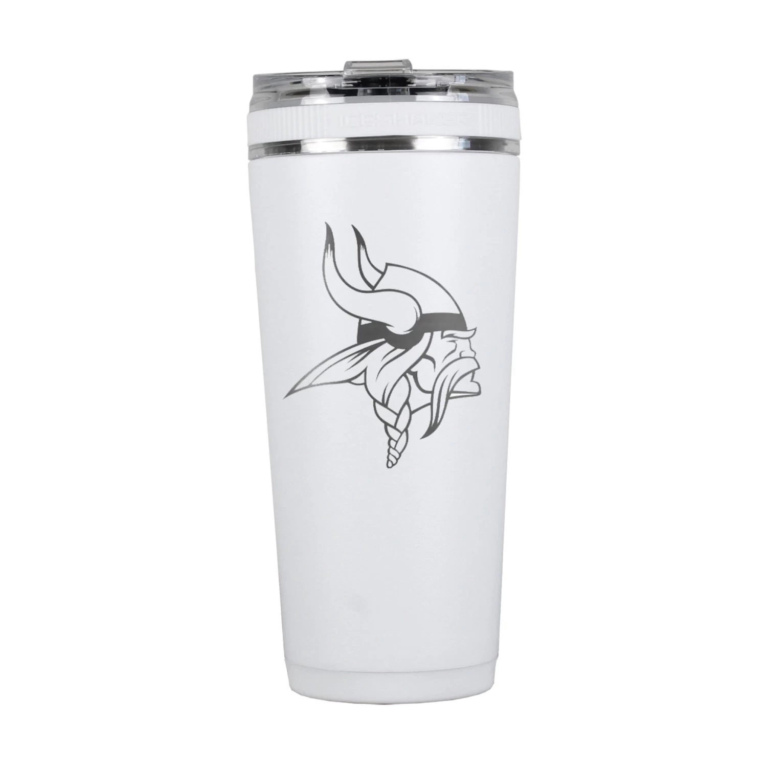 - Vikings logo engraved on back of bottle