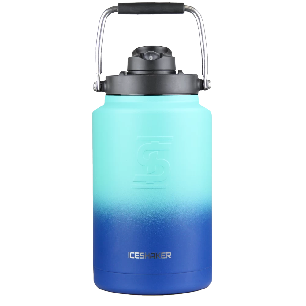 Constructed from premium, kitchen-grade stainless steel, the Ice Shaker® One Gallon Jug will not absorb odors, will not leave behind a metallic taste (unlike most metal jugs and bottles), and is double wall vacuum insulated to keep your drinks cold for 60+ hours and prevent condensation from building up on the outside of the jug. For easy sipping, the One Gallon Jug comes with our Sport Straw that regulates the flow of liquid so that you’re only taking in as much liquid as YOU want! The unique multi-purpose lid lets you sip water through the integrated flip-up Sport Straw or chug/pour your drink by twisting off the Sport Straw Lid. For easy carrying, the One Gallon Jug comes with a durable and sturdy handle so that you can take your Ice Shaker One Gallon Jug anywhere you go! Take your hydration to the next level and keep your water ice cold all day with Ice Shaker’s One Gallon Jug.