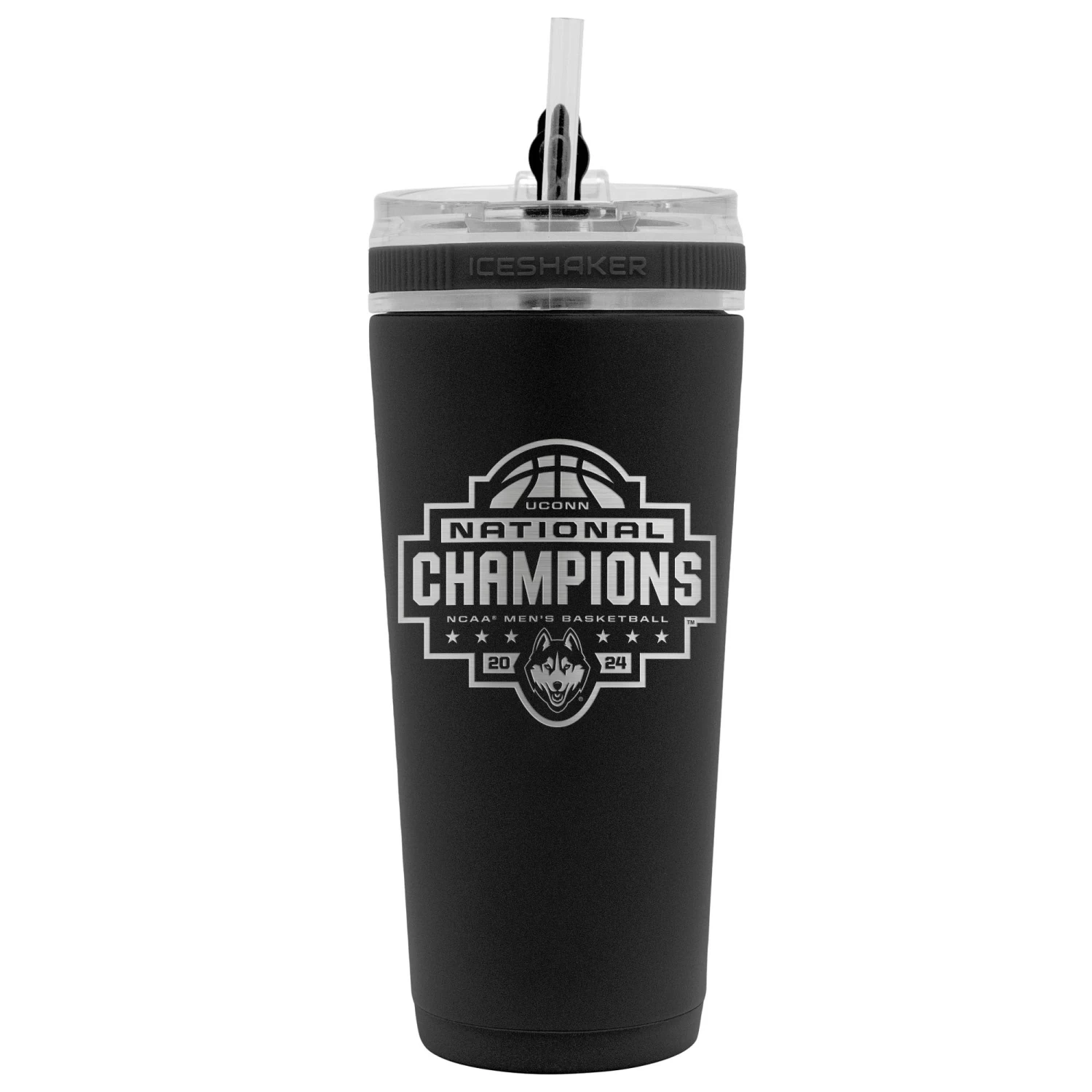 - 2024 NCAA Men’s Basketball Champions logo engraved on back of bottle